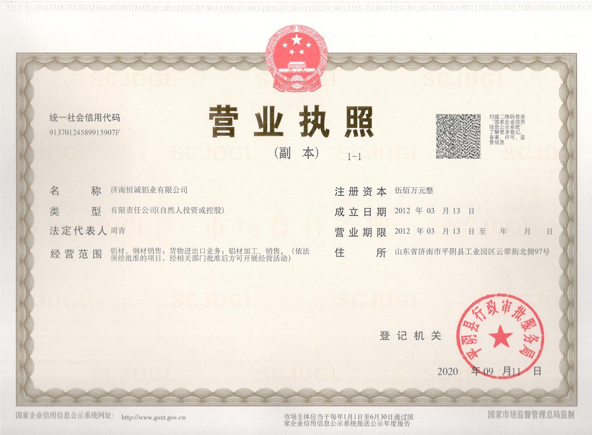 濟(jì)南恒誠鋁業(yè)有限公司是一家集鋁及鋁合金生產(chǎn)經(jīng)營于一體的綜合性鋁板廠家,主要產(chǎn)品有花紋鋁板、合金鋁卷板、陰極鋁板、鋁及鋁合金板、壓型鋁板、覆膜鋁板、防腐保溫鋁卷、鋁帶、鋁箔、鋁棒、鋁管、鋁線、鋁錠等產(chǎn)品。